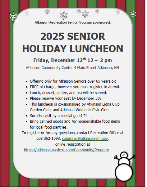 Any questions, please contact Atkinson Recreation office at (603)362-1098 / commrec@atkinson-nh.gov.